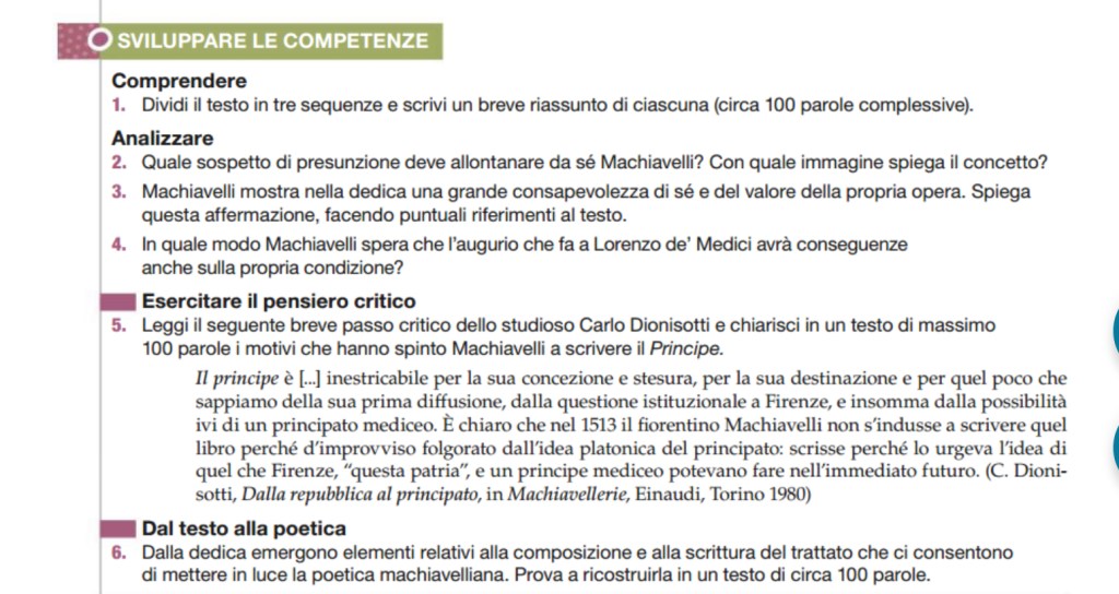 In primo luogo il lessico utilizzato e la prosa devono essere comprensibili anche a uno studente di 16 anni, senza indulgere nella sciatteria e semplificazione, ma neanche avvalendosi di termini lontani dalla loro esperienza e, quindi, incomprensibili. Ricordo ancora che, quando ho iniziato a insegnare nel 2010, nella mia scuola paritaria era in adozione l’edizione gialla del celeberrimo La scrittura e l’interpretazione, di Romano Luperini, Pietro Cataldi e Lidia Marchiani: alcuni paragrafi sfioravano l’incomprensibilità (per me, e figurarsi per loro), la sintassi era marcatamente ipotattica e il lessico di livello alto. Gli approfondimenti sul “Conflitto delle interpretazioni”, poi, erano più degni di un corso universitario in “Teoria della letteratura” che non di un manuale liceale. Negli ultimi anni la nostra scuola ha adottato la nuova edizione di Letteratura.it di Frare-Langella-Motta dal titolo Amor mi mosse e, sebbene si tratti di un libro raffinato, con un buon apparato iconografico e scientificamente ineccepibile, le parti di contesto generale, di introduzione all’autore e all’opera sono ancora marcatamente letterarie e bisognose di alcuni chiarimenti da parte del docente. Per questo motivo il linguaggio risulta un elemento, a mio avviso, di criticità di questo manuale.