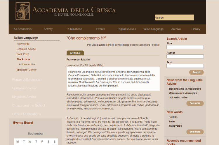 Nel 2018, raggiunti il ruolo e una certa stabilità professionale, ho partecipato con entusiasmo al corso di formazione “Insegnamento delle materie letterarie nella scuola secondaria di I e II grado e nuove tecnologie. Università e Scuola in ricerca-azione” organizzato dal CQIA dell’Università di Bergamo: volevo conoscere altri modi di trattare la grammatica e, in effetti, ho trovato tre tutor che avevano un approccio rigoroso, scientifico, ma innovativo nei confronti della riflessione linguistica. Benché nel corso del progetto mi sia concentrato più sull’applicazione del modello valenziale al latino, ci sono stati forniti dei manuali in bibliografia per snellire e ripensare l’insegnamento grammaticale usando le acquisizioni della verbo-dipendenza. Per me epifanico è stato l’incontro con Francesco Sabatini e il suo Lezione di italiano, volume che dovrebbe far parte della biblioteca di ogni buon docente di lettere; il suo articolo poi Che complemento è, apparso su «La Crusca per voi» mi ha confermato l’insensatezza di quelle pratiche classificatorie che ho subìto come studente e che iniziavo a mal tollerare come insegnante.