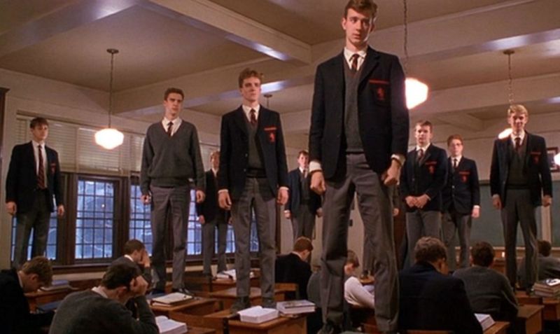 Del film, datato ormai 1989, si mettono in secondo piano, però, due elementi cruciali: il suicidio di Neil, l’allievo prediletto, amante del teatro, e il licenziamento dello stesso Prof. Keating, su cui l’istituto privato apre un’inchiesta per istigazione al suicidio. A partire da questo film, la figura del docente di letteratura che declama in classe versi di Walt Withman ha però dato vita all’archetipo dell’insegnante fascinatore, capace di infiammare gli animi degli studenti: un essere semi-divino, colto su un palcoscenico, ovvero l’aula della classe (e infatti nel film ambiente scolastico e teatrale si intrecciano).