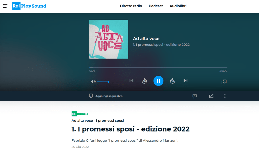 Non sono solito assegnare capitoli per casa, quanto proporre un’introduzione schematica (con l’ausilio anche di presentazioni) al capitolo e passare alla lettura meditata, ad alta voce, avvalendomi di Rai Play e della recitazione chiara, vigorosa e coinvolgente di attori quali Fabrizio Gifuni, Massimo Popolizio e Paola Pitagora. Teatralizzare il testo, infatti, se gli studenti non sono bravi a leggere, lo può rovinare, così come portare a fraintendimenti e, quindi, salvo casi particolari di capitoli letti (malamente…) da me perché sottoposti a tagli drastici, meglio affidarsi a voci esperte.